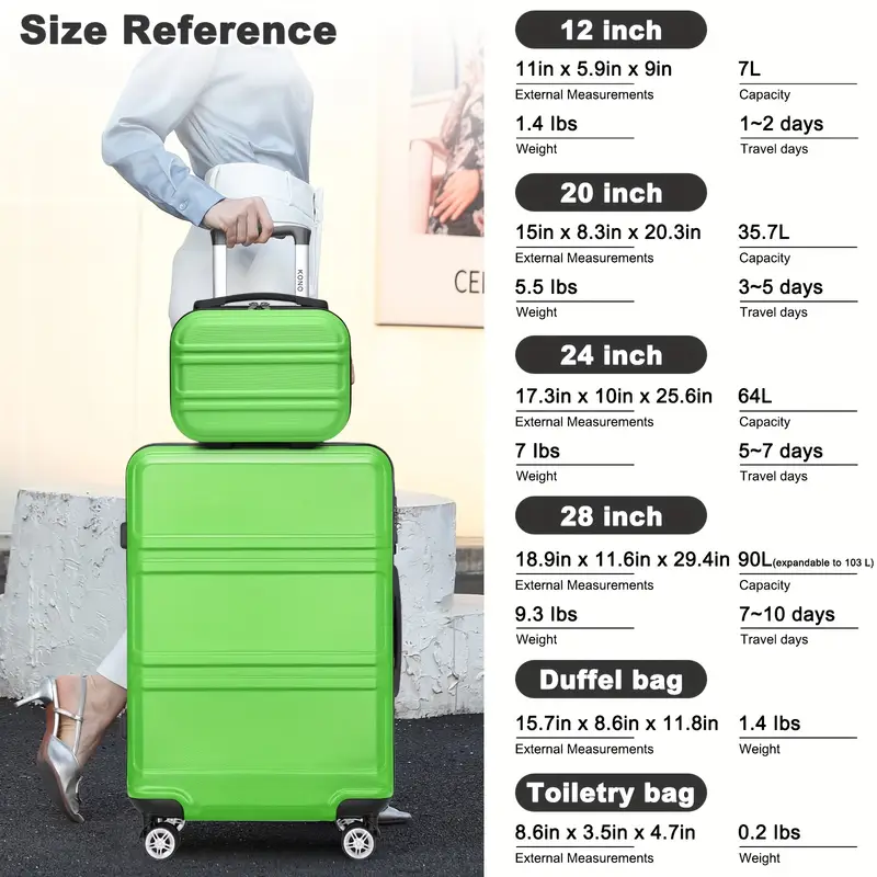 Dieses 3-teilige Set umfasst einen 20-Zoll-Cabin-Koffer, einen 24-Zoll- und einen 28-Zoll-Upright-Koffer, die alle ineinander verschachtelt werden können.